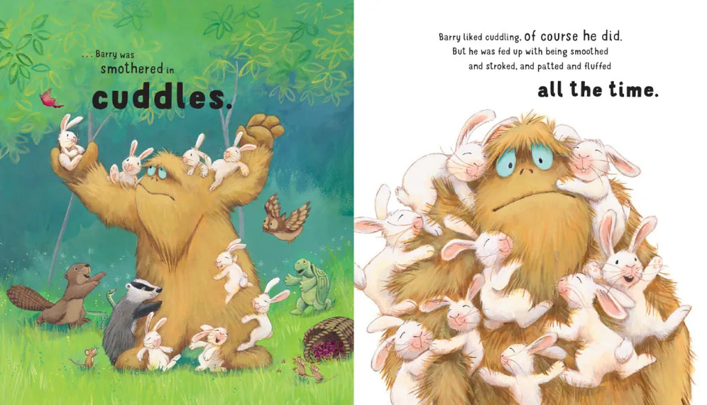 Barry loves living in the forest. The other animals love to cuddle him because he's so soft. And even though Barry loves hugs, sometimes he just wants to be left alone! He comes up with an idea to put an end to all the cuddles and interviews a variety of "cuddly" replacements. But will his plan work?