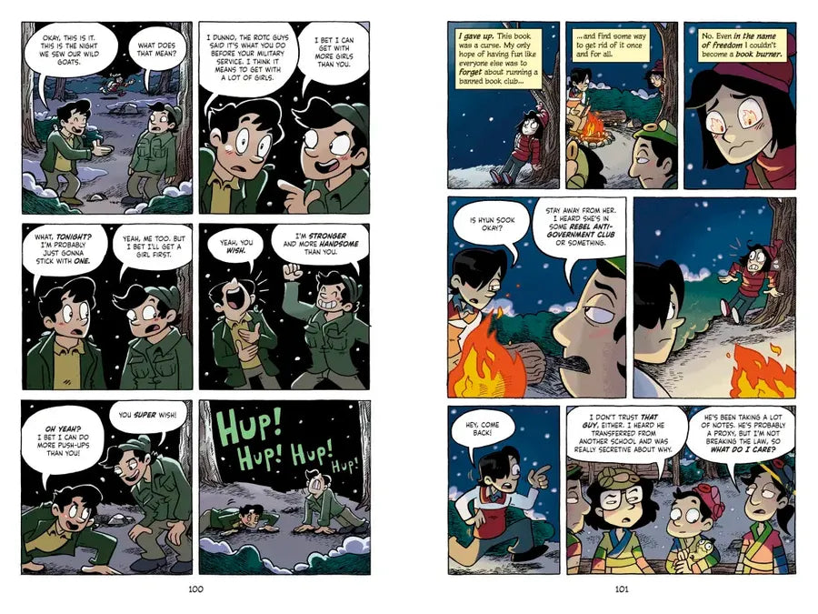 In the snowy mountains, everyone has a different plan for their one night of freedom. Hyun Sook is trying to restart her banned book club  but has to hide from a boy she suspects of being a spy. Taehee and Kiwoo are trying to build up the nerve to confess their feelings for one another, while Suji pines after her crush, ready to risk it all and finally tell someone the secret she's been hiding for her entire life.