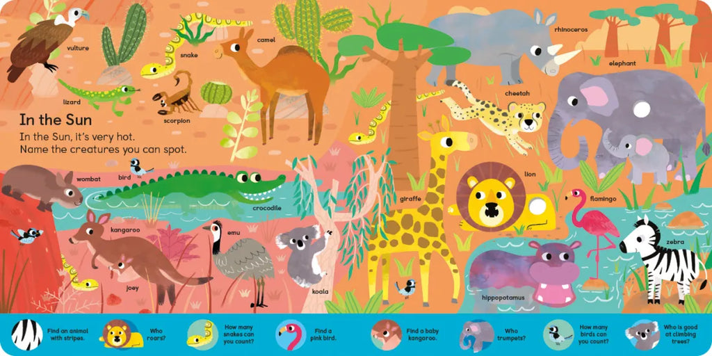 With 100 animals to find hidden in its pages and 12 exciting accompanying animal sounds, this brightly illustrated search and find board book brings the animal world to life!