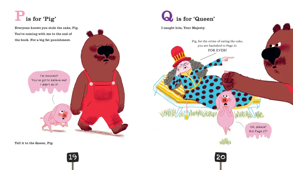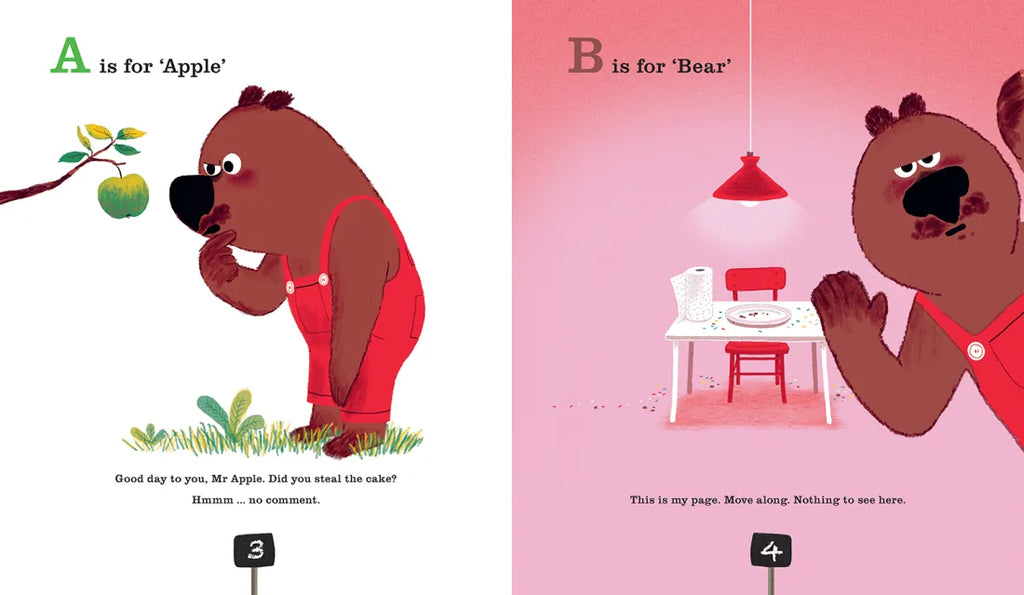 As Bear travels from A to Z, visiting all sorts of characters, objects and extraordinary places along the way, can YOU help him search for the culprit? But, wait! Are those crumbs on Bear’s page? And are those Bear-shaped pawprints next to the empty cake stand? It seems our narrator might not be as reliable as we first thought...
