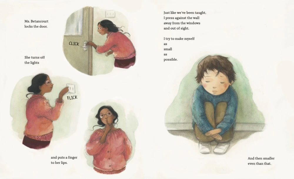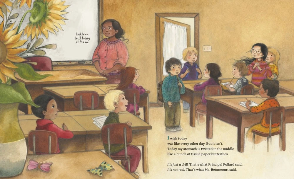 During his school's lockdown drill, Henry tries to make himself as small, and still, and quiet as possible, but even though he knows it's just a drill and it's not real, he still doesn't like it. And even when the drill is over, it doesn't feel over for him.