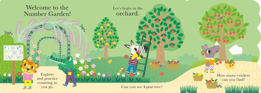 Children are invited into the world of nature and numbers 1 through 10 in this bright, quirky board book! Numbers 1 through 10 and different areas of nature, such as an orchard, a rock garden, and the pond, are introduced with the help of adorable animal friends. Questions for the reader on each spread encourage active reading, while a summary page at the end of the book allows for review and recall.