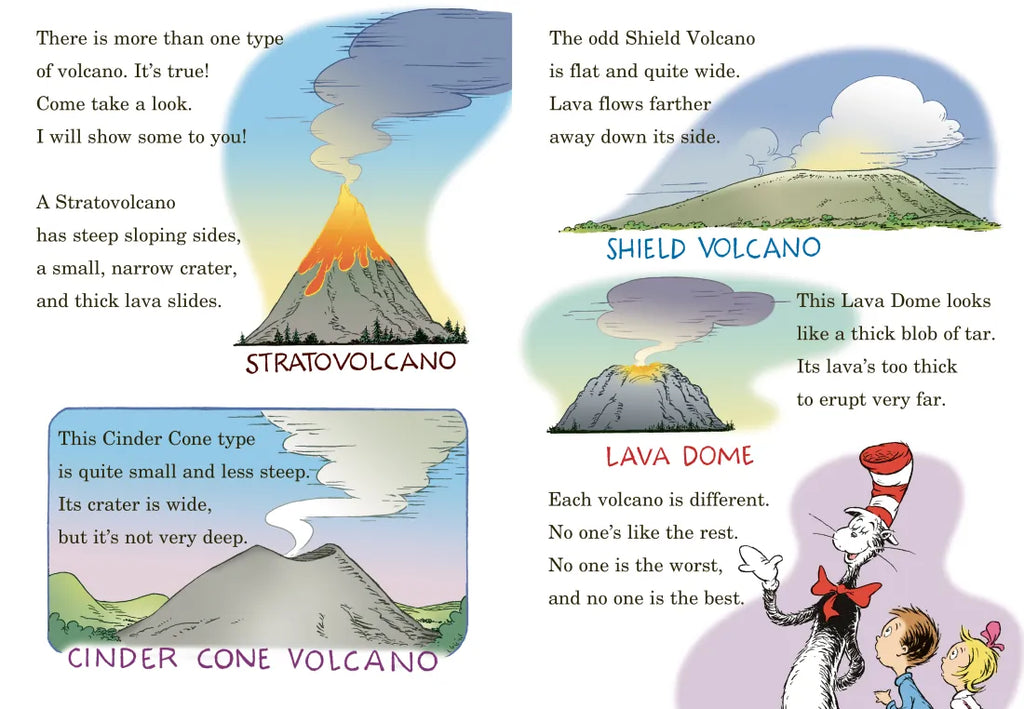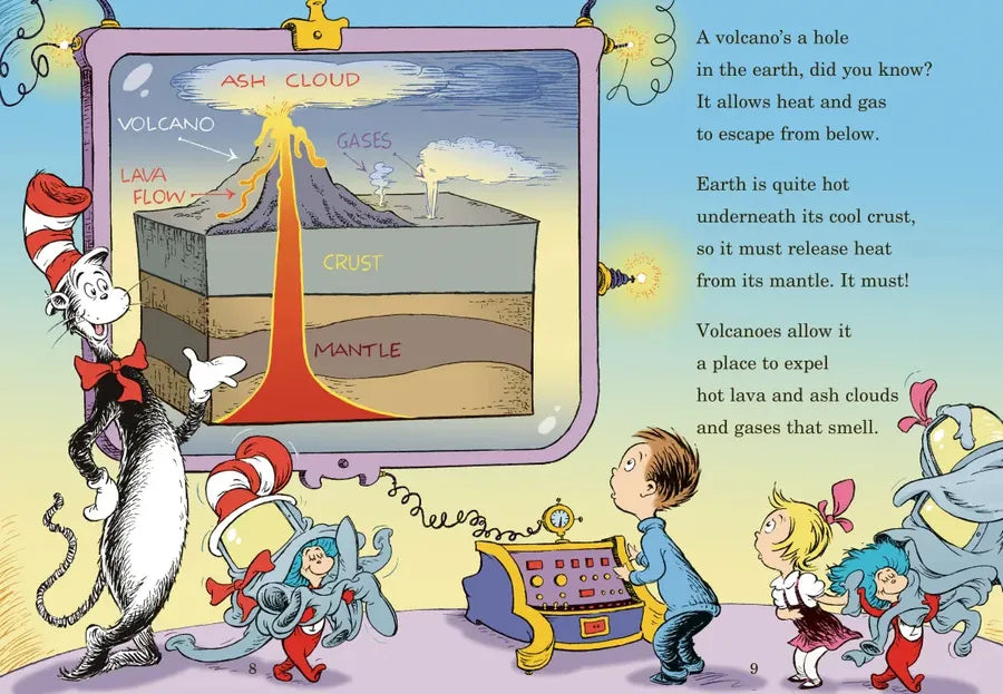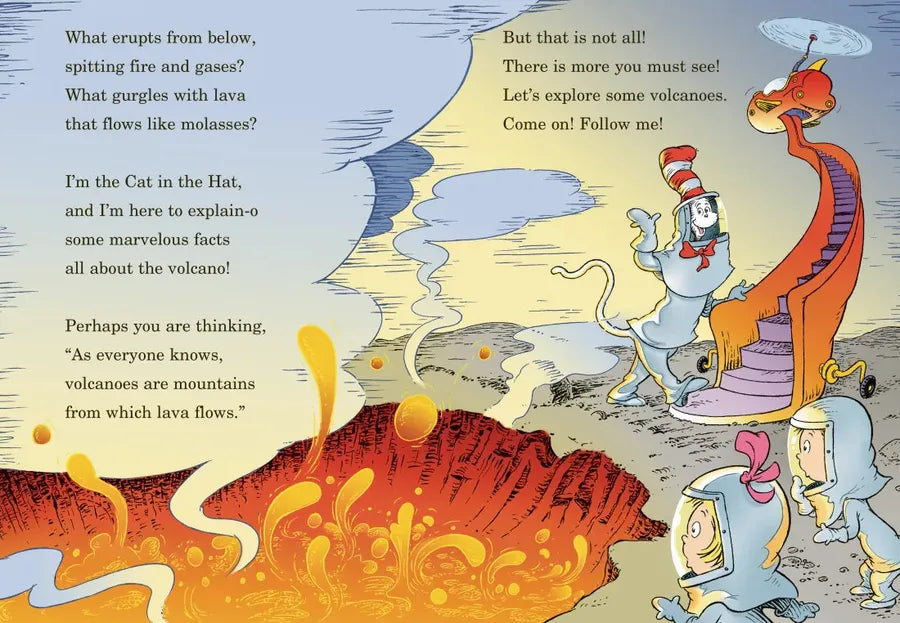 Laugh and learn with fun facts about hot lava, ash clouds, volcanos, and more—all told in Dr. Seuss’s beloved rhyming style and starring the Cat in the Hat!