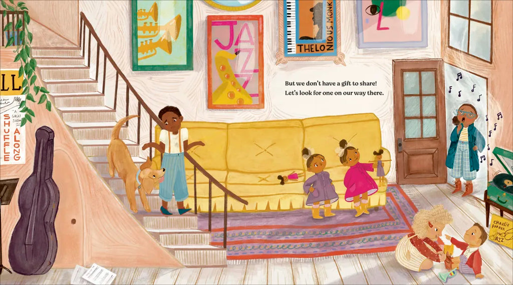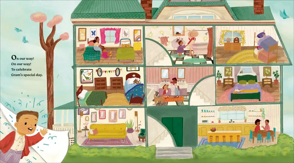 Fortunately, there’s no quashing the enthusiasm and creativity of these siblings, who have a marvelous time scouting and singing as they shimmy over to Gram’s, making the journey its own celebration. Their combined discoveries will make this a very special day indeed!