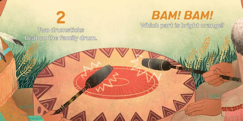 This eye-catching, interactive board book is sure to keep toddlers engaged. Count one through ten as you make your way through the day of the powwow, looking for colors, family members, jingle dresses, musical instruments, and tribal citizens in this introduction to a traditional Native event.