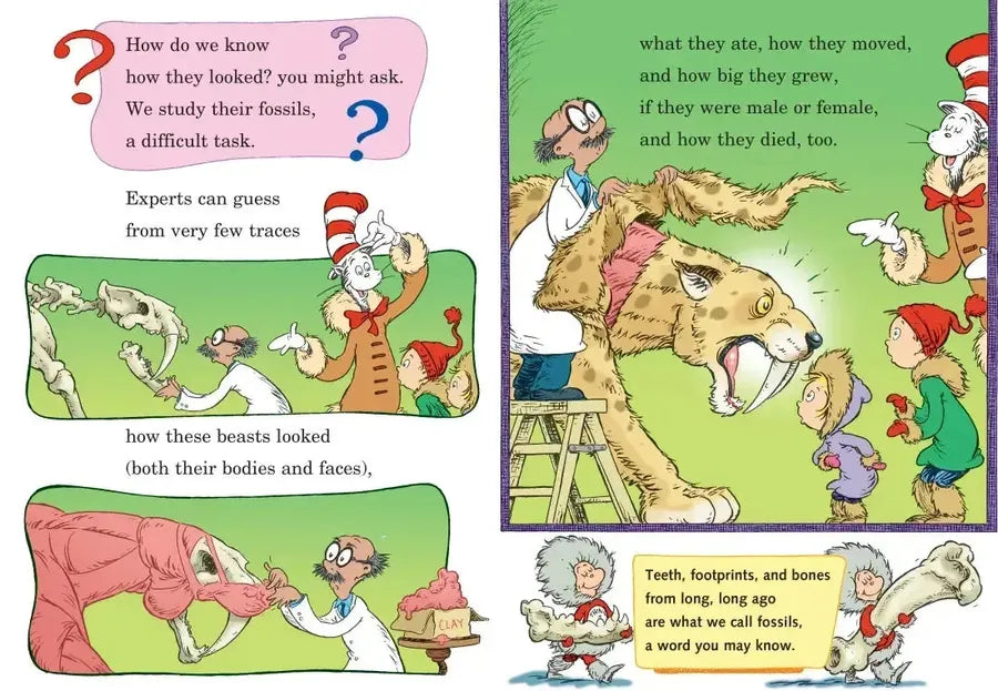 “I’m the Cat in the Hat. Oh, please turn the page to discover some mammals from the Great Ice Age!”