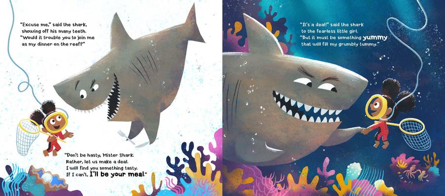 A clever little girl outsmarts a silly hungry shark in this rhyming underwater read-aloud romp—perfect for ages 3-7.