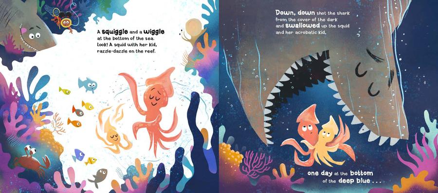 A clever little girl "with a net for catching pearls" meets a shark who wants nothing more than to eat her for dinner. Diving into these gorgeous pages, readers will find nothing short of a classic tale: a bully being shown up by his weaker and far more clever adversary! An ebullient and unabashedly entertaining read aloud, One Day at the Bottom of the Deep Blue Sea has enough bite to excite readers of all ages.