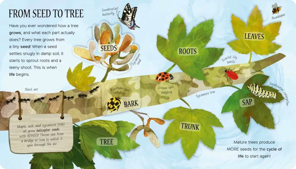 Young readers are introduced to trees in this nonfiction board book that includes lift-the-flaps and peek-through pages throughout, as well as prompts and activities to encourage children to get outside and explore their world.