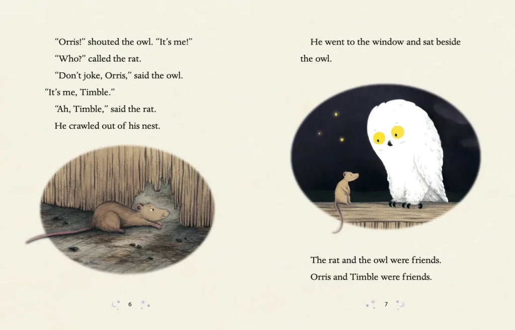 Orris the rat and Timble the owl are unlikely friends. Each night, Timble visits Orris in the barn and listens to his stories. But Timble is growing up, and one evening when the owl doesn’t appear as usual Orris wonders if Timble has forgotten him. Is their friendship over? Or could it be that Timble has a tale of his own to share? Illustrated with wistful tenderness, the second title in a projected trilogy to feature this charmingly offbeat pair masterfully explores the stories we tell ourselves, the stories we tell each other, and the binding magic of friendship.