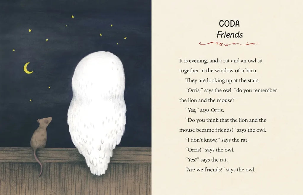 Orris the rat lives alone in an old barn surrounded by his treasures, until the day his solitude is disrupted by a sudden flutter of wings and a loud screech. A small owl has gotten caught in a trap in the barn. Can Orris “make the good and noble choice” (as the king on his prized sardine can might recommend) and rescue the owl, despite the fact that owls and rats are natural enemies? And if he does, will he be ready for the consequences? With humor and tenderness, two-time Newbery Medalist Kate DiCamillo brings us this first of three tales celebrating unlikely friendship and the power of sharing stories and doing the right thing—a soon-to-be classic brought to expressive life by the full-color illustrations of Carmen Mok.