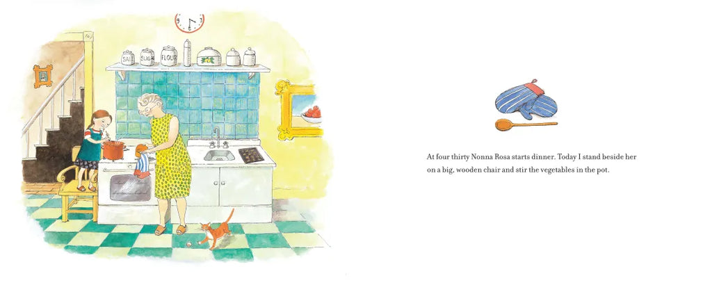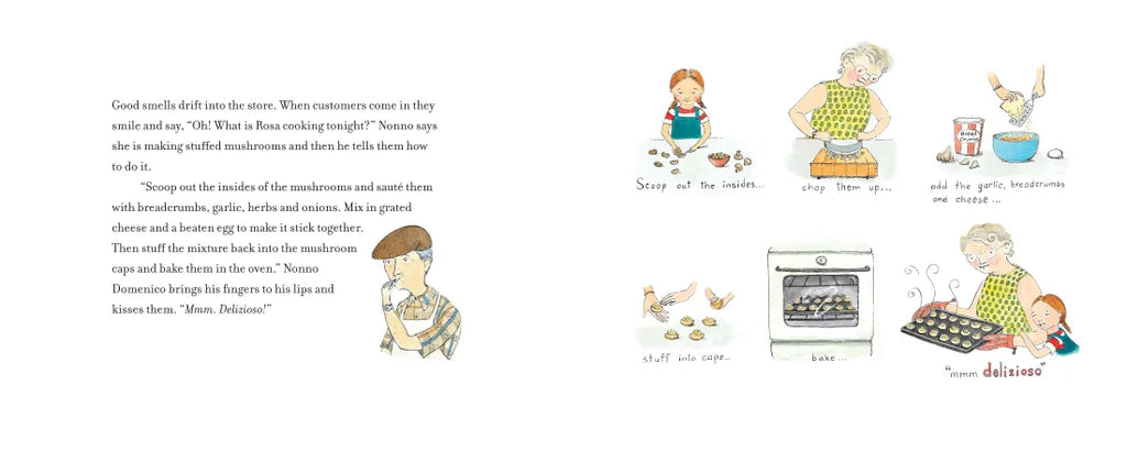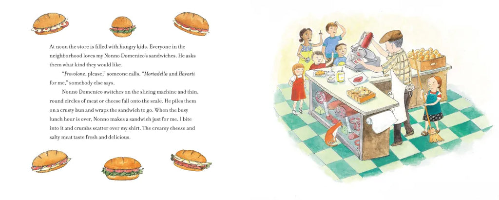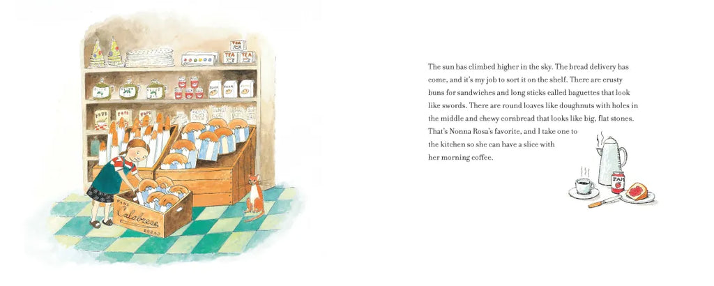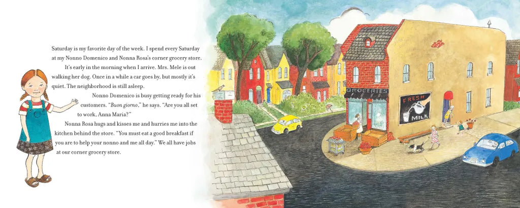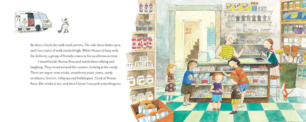 Anna Maria's day of helping in her grandparents' corner grocery store is filled with activity, friendly faces and an array of dry goods and delectable treats. There is so much to do — making signs, setting out local produce, weighing purchases — but Anna Maria doesn't mind. You see, this is no ordinary place: Nonno Domenico and Nonna Rosa's store is where neighbors meet, share their news and make friends. Whether they are hungry, looking for a bargain, in need of a recipe or simply searching for something new to try, they can find it here in Our Corner Grocery Store.