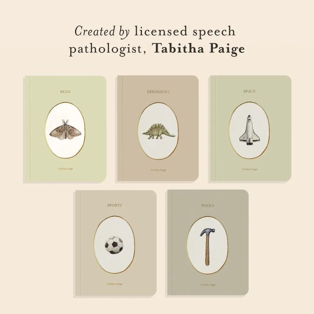 Dinosaurs, Space, Tools, Bugs, and Sports Board Book Set for Boys & Girls