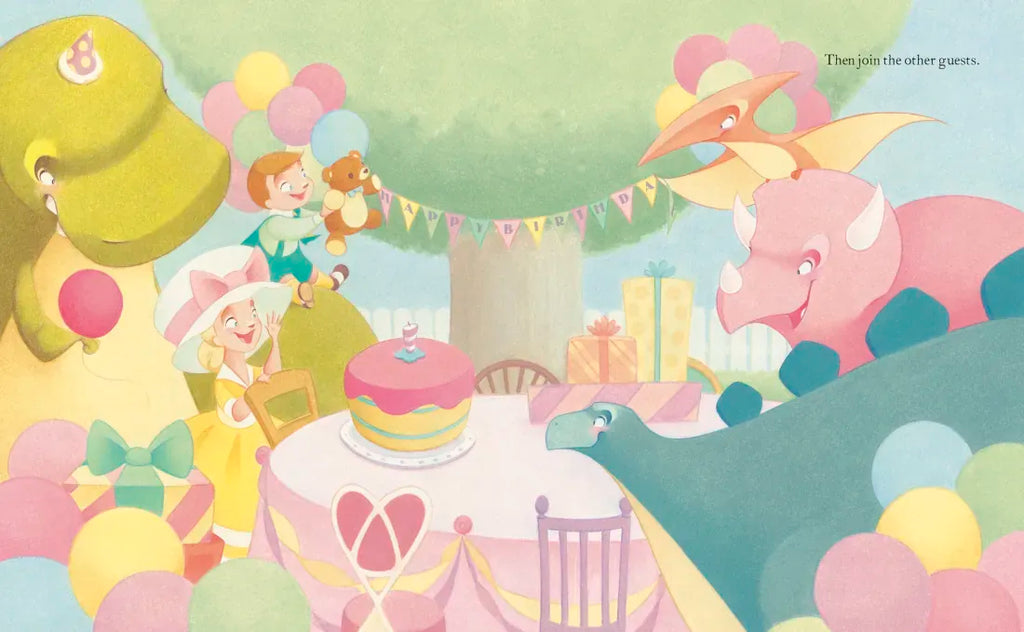 Rex cordially invites you and all of his friends to celebrate a milestone birthday, so remember to greet the guest of honor at the door with an enthusiastic "happy birthday," share party favors with the other attendees, and best of all, enjoy some cake and games! When it's time to leave, don't forget to thank the host for a wonderful time and make sure to extend the invitation when it's time to celebrate your birthday.