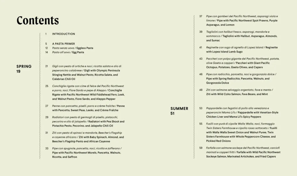 Using favorite ingredients such as salmon and clams and foodie favorites like nettles and chanterelles, this book offers home cooks dishes that are as comforting as a favorite spaghetti or fettucine dish but as bold and exciting as a hot new restaurant entrée. In addition, a pasta primer helps home cooks make fresh pasta at home and choose the right pasta shape for the right sauce or dish.