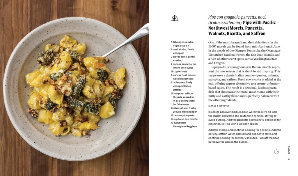 • Pipe with Pacific Northwest Morels, Pancetta, Walnuts, Ricotta, and Saffron