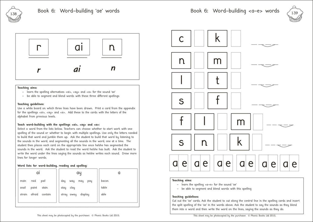 Photocopiable activities to accompany the set of 12 books in Phonic Books Alba, decodable phonics books for structured literacy intervention with older readers. This activity book includes activities for segmenting, comprehension, blending and writing linked to the Alba books (cvc, cvcc, ccvc, ccvcc, sh, ch, tch, th, ck, ng, qu, wh, le, -ed, ai, ay, a-e, a, ee, ea, e, y, ey, o-e, ow, oa, o, er, ir, ur, ow, ou, igh, i-e, y, i, oo, ew, u-e, u).