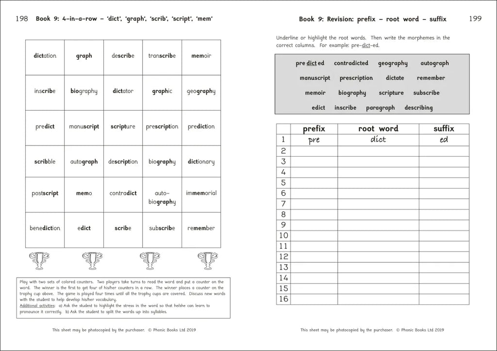 Photocopiable activities to accompany the set of ten books in Phonic Books Amber Guardians for intervention and building reading stamina with older readers. This activity book introduces a range of suffixes, prefixes and root words and contains reading comprehension and spelling activities using English morphology linked to the Amber Guardians books. Answer sheets are included.