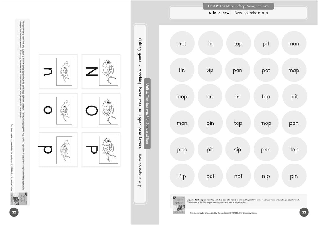 Accompanying photocopiable activities covering reading, writing, blending and games for Phonic Books Dandelion Readers Set 1 Units 1-10 Sam (Alphabet Code Blending 4 and 5 Sound Words).
