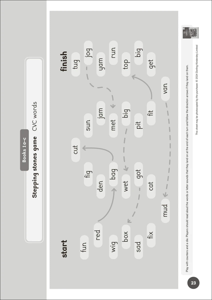 Three books in each stage provide phonics practice while offering different stories, encouraging independent reading from the start. It starts at at CVC level and introduces adjacent consonants and consonant digraphs, with gentle progression throughout the set.