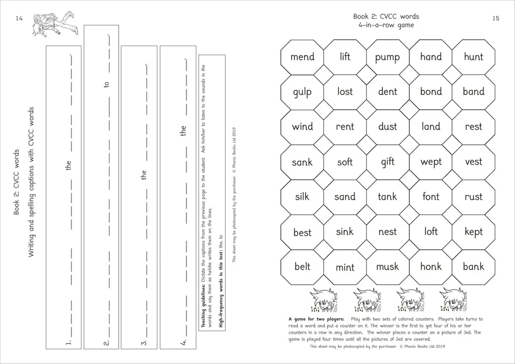 Accompanying photocopiable activities for word building, reading, spelling and comprehension for Phonic Books Moon Dogs Set 2.