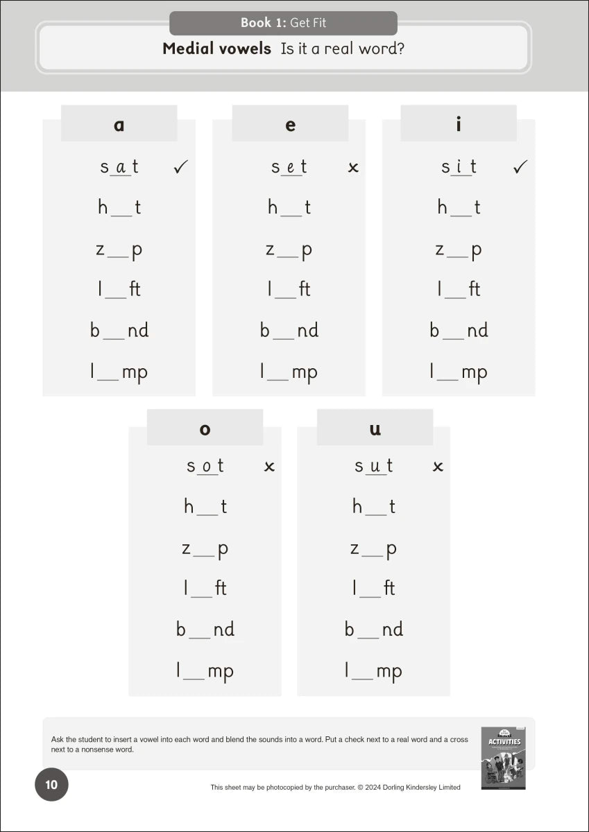 - Each unit introduces new letters and sounds through sounding them out (sat, s - a - t).