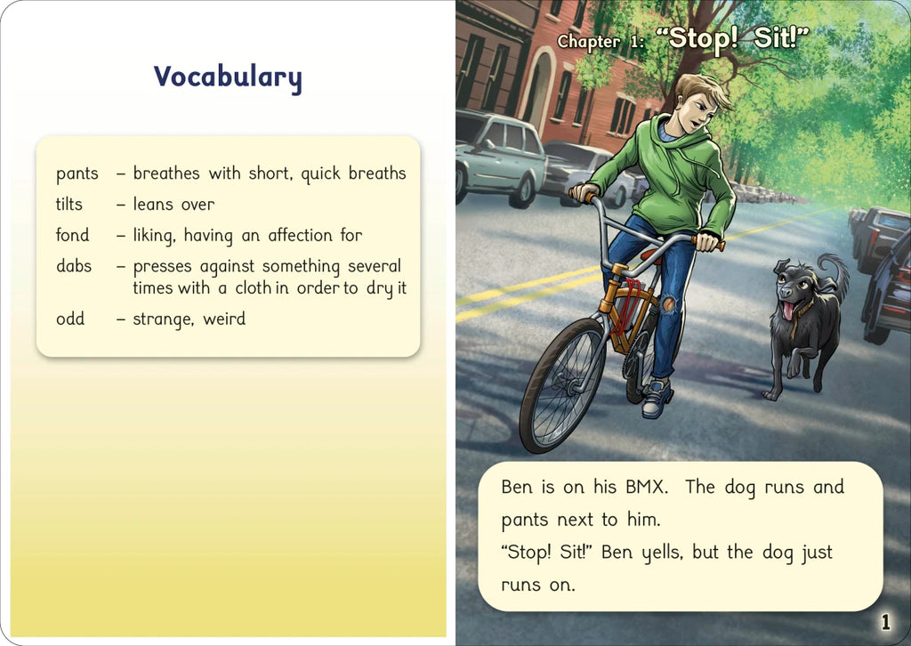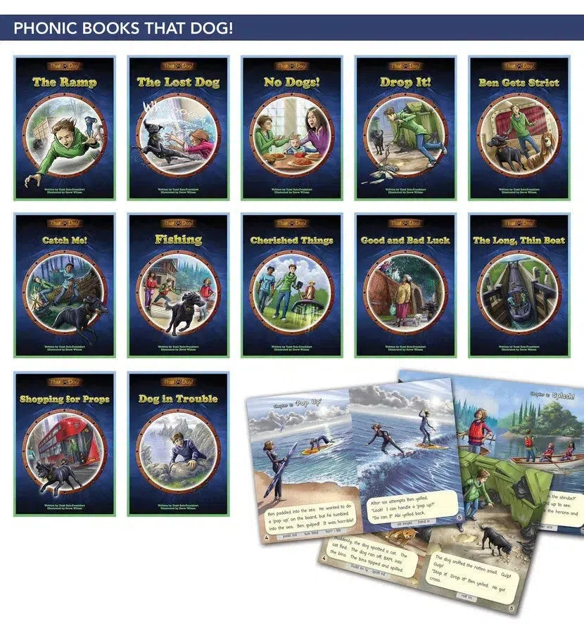 Ben has always wanted a dog. One day a scruffy stray follows him home. Will he get to keep him? This action-packed story takes the reader from CVC and CVCC word text through to consonant blends, consonant teams and suffixes -ed and -ing. Phonic Books That Dog! comprises 12 decodables for older readers who can read simple CVC words. That Dog! shares the same phonic progression as Phonic Books Magic Belt and can be used in parallel to consolidate phonemic knowledge and reading skills.