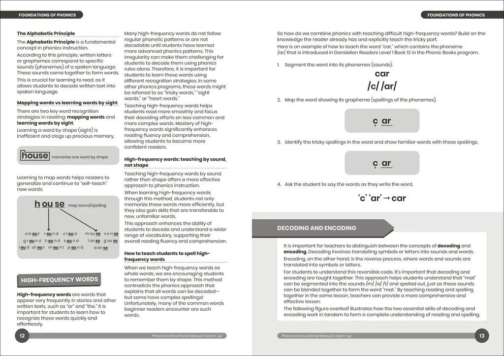 Phonics Instructional Manual Catch-up is an essential resource for using the Phonic Books Catch-up range for intervention sessions (Tier 2 small group instruction) with older readers.