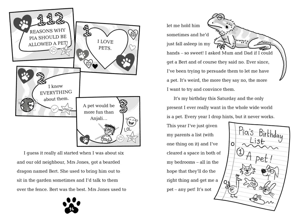Meet Pia, the girl who loves pets, but isn't allowed one of her own! A brand-new laugh-out-loud series of funny animal adventures packed with hilarious illustrations, from the bestselling and award-winning creators of Anisha, Accidental Detective.