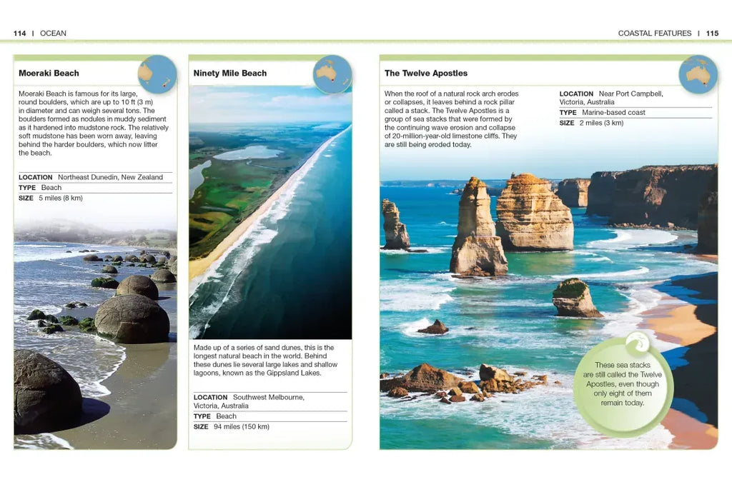 A visual look at the planet we call home, Pocket Genius: Earth delves into Earth's geology and geography, examining oceans, mountains, deserts, clouds, and more. From sky-high mountains to deep, dark oceans and densely packed forests, Pocket Genius: Earth profiles more than 180 of Earth's features including volcanoes, rivers, and weather and answers questions like What causes an earthquake? Where is the world's largest glacier?, and Why is climate change happening?
