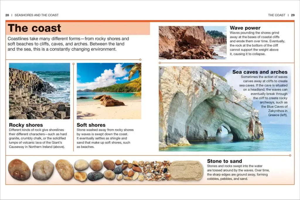 With nearly 97% of the planet’s water held in the oceans, there is an incredible variety of creatures that call the ocean home. This mini-encyclopedia explores all the different marine habitats from tidal pools and salt marshes to coral reefs and ocean floor ridges, to name a few. Curious kids interested in the seven seas will also learn about how oceans are formed, what causes tsunamis and typhoons and how tidal waves are used to generate electricity.