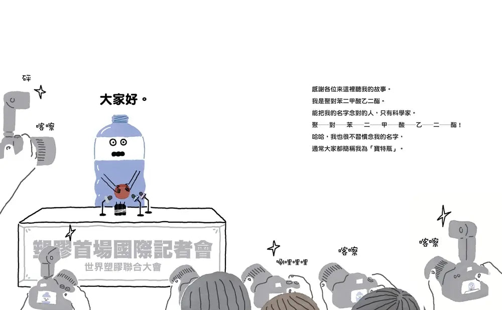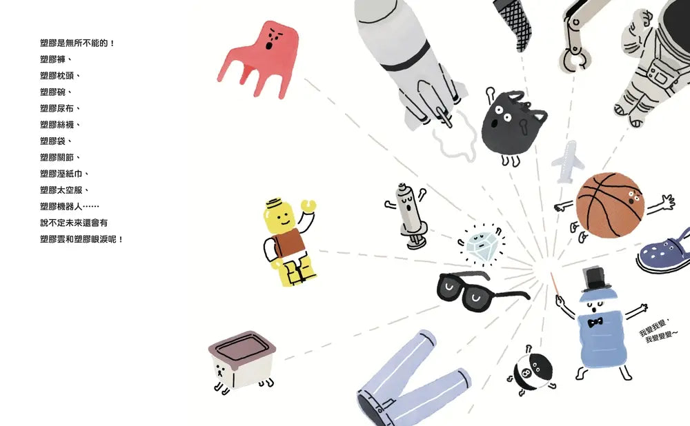 淺顯易懂的介紹塑膠是如何誕生,又為何會變成微粒,將環境知識自然融入故事。