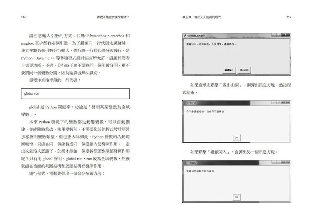 以武俠小說的場景為媒介,讓武林絕招和程式設計理論緊密結合。只要你摸過電腦、玩過電動遊戲,熟悉鍵盤和滑鼠的操作,就能讀懂本書的程式邏輯。