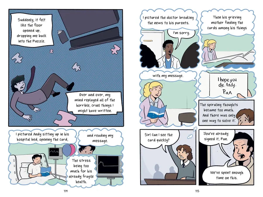 Pan has no way of knowing that this anxiety puzzle and the stressful attempts to solve it are evidence of a condition called Obsessive Compulsive Disorder. This is his story of living with and eventually learning about OCD. Told with endearing honesty and humor, Puzzled shows the reader the importance of empathy for oneself and those going through something they don’t yet understand.