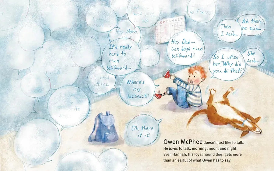 Owen McPhee doesn't just like to talk, he LOVES to talk. He spends every waking minute chattering away at his teachers, his classmates, his parents, his dog, and even himself. But all that talking can get in the way of listening. And when Owen wakes up with a bad case of laryngitis, it gives him a much-needed opportunity to hear what others have to say.