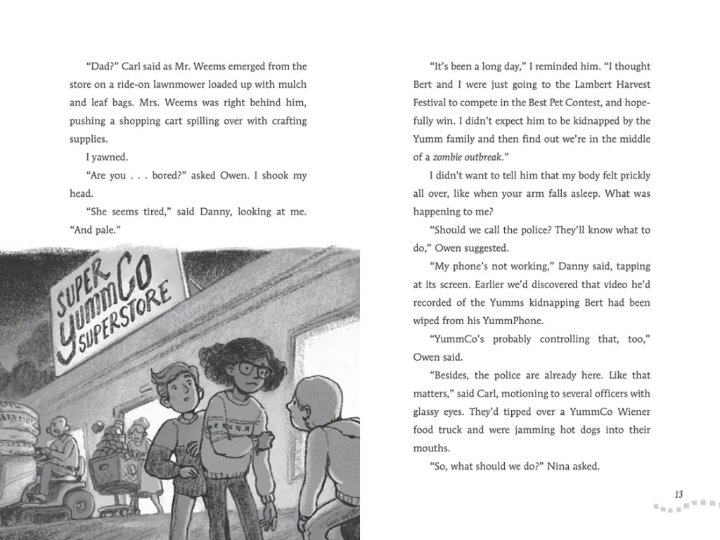 A thrilling finale to an arch mystery-adventure series pits Bert the cat against the infamous YummCo Labs. Bert was a bedraggled stray before nine-year-old Mellie Gore adopted him. And he has already escaped from YummCo once, vowing to find a way back to free the other captives. Now the Yumms have nabbed Bert again, and he wants revenge. Mellie’s plans to rescue her pet are interrupted when the entire town, including her own parents, begin turning into YummCo-product-consuming zombies. And why is Mellie herself suddenly starved for food to fuel her buzzing brain? What exactly is happening at the YummCo Labs? With trademark wit and a taste for the playfully macabre, award-winning creators Kara LaReau and Ryan Andrews close out the ZomBert Chronicles with a funny and suspenseful flourish.