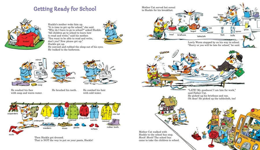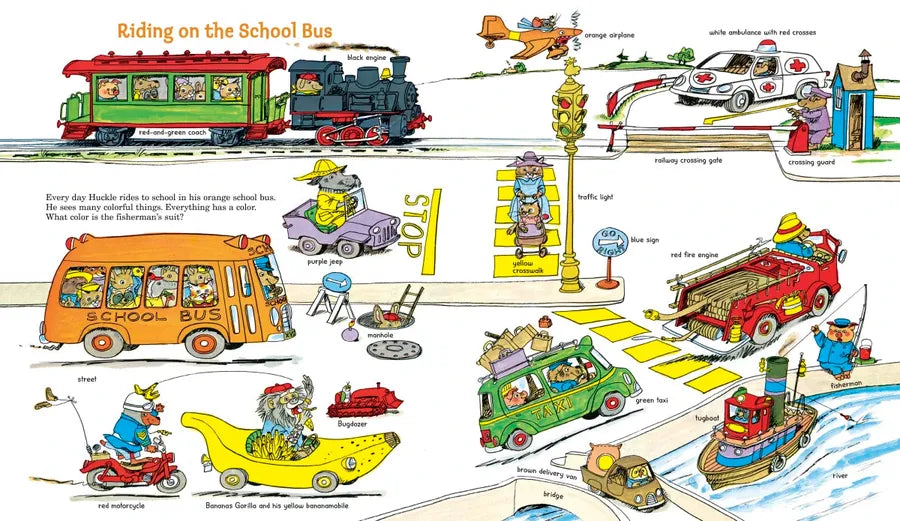 Go back to school with Huckle Cat, Lowly Worm, and all their friends in this Busytown book! Learn about numbers, letters, colors and more! A great way to introduce young children to Richard Scarry's Busytown and early learning concepts!
