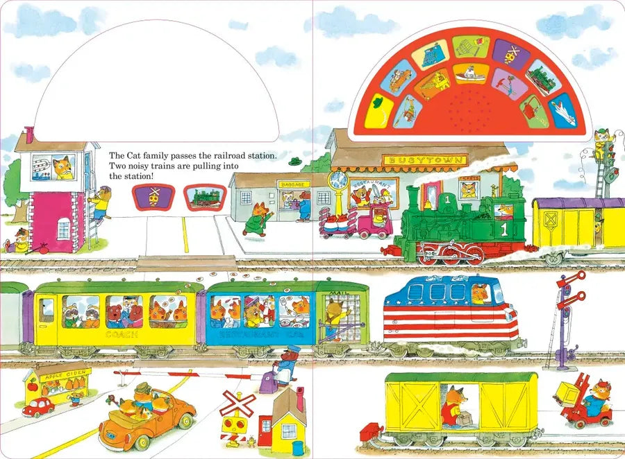 Visit Richard Scarry’s Busytown in this interactive board book featuring 12 different sounds! Children will love to spot the icons, press the buttons, and listen to the fun, noisy and silly sounds of Busytown!