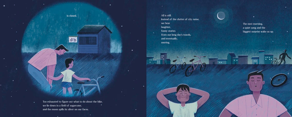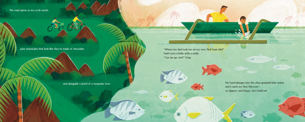 When they arrive in the Philippines for a family reunion, Mateo sees something in his dad’s eyes that he’s never seen before—adventure. Mateo and his dad embark on an epic bicycle trip to his father's childhood home, and along the way, they catch fish in a turquoise river, pick coconuts from a tall tree, and ride through one glorious rice field after another.