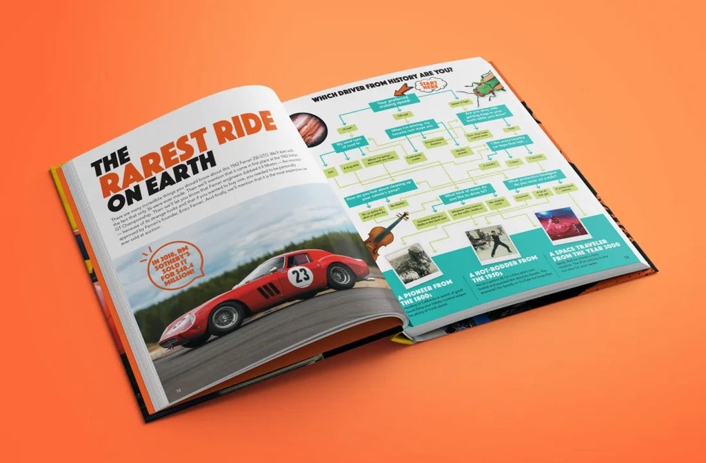 For car-obsessed 8–12-year-old kids who want to know everything from how engines work to the design process to how much they need to save to buy a Ferrari!