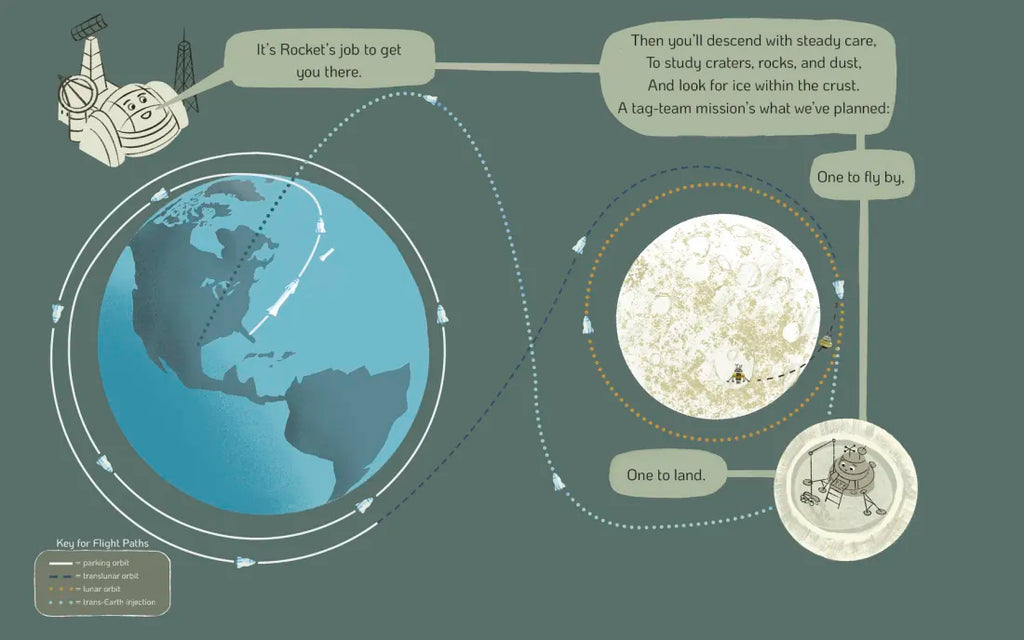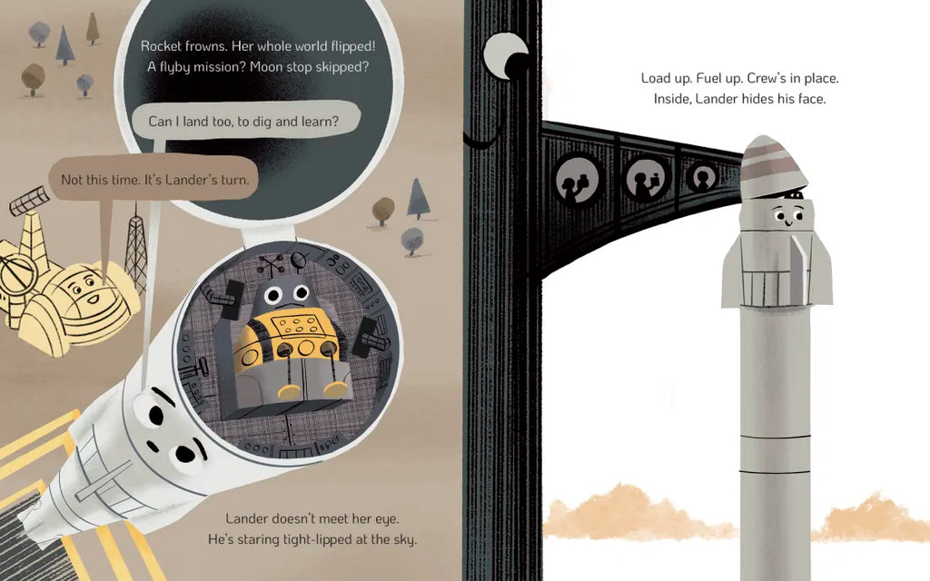 After embarking on her first solo mission to place a satellite into orbit, Rocket is back, and she’s headed on a lunar expedition! But this time she’s not going alone. Instead of exploring, Rocket’s mission is to drop off a spacecraft, Lander, and then return to Earth while Lander investigates the Moon's surface.