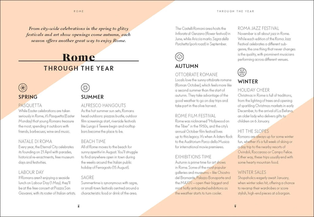 This isn’t your ordinary travel guide. Beyond Rome’s iconic ancient ruins are hidden street food haunts, buzzing aperitivo spots and scenic walks that locals love – and that’s where this book takes you. Turn the pages to discover: