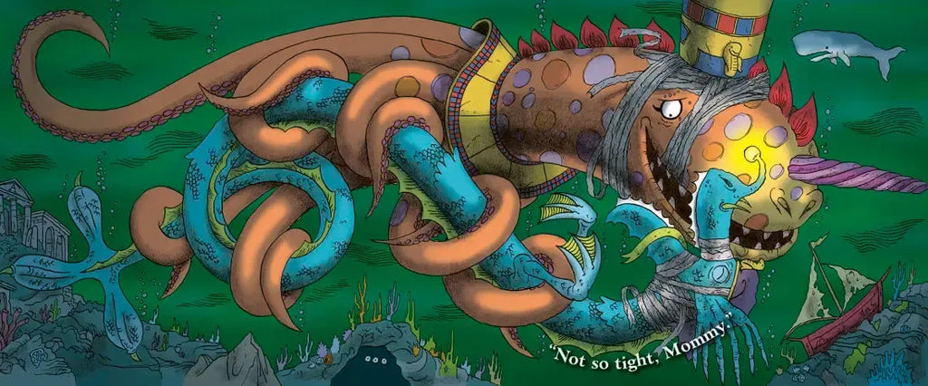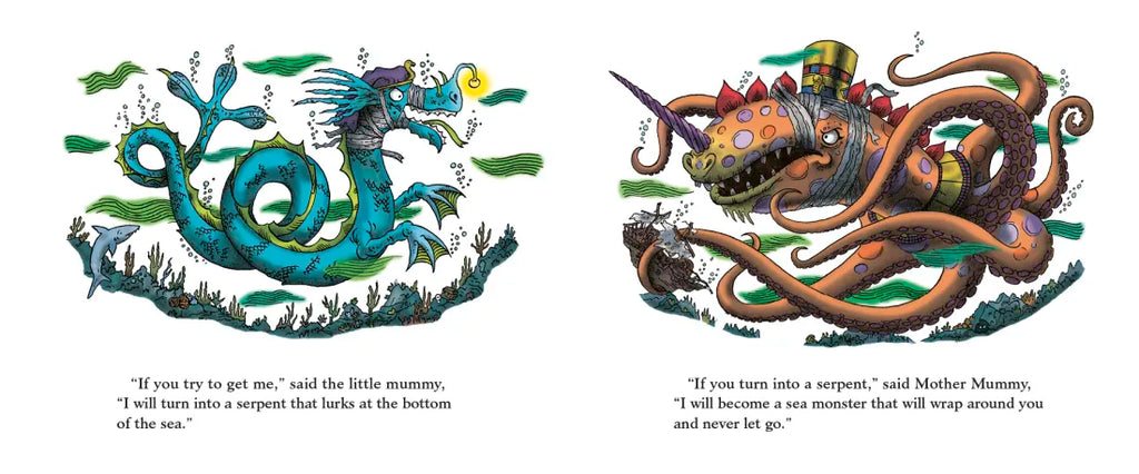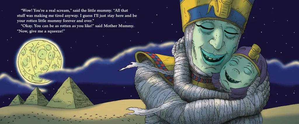 Mike Rex has created a delightful, monster-y romp that reinterprets the classic picture book about motherly love, The Runaway Bunny by Margaret Wise Brown and Clement Hurd. In this parody, the little mummy comments on his mother’s sometimes overly exuberant love, and the escalation of their outrageous ideas for leaving and (of course) finding each other will make modern day parents and kids laugh aloud.