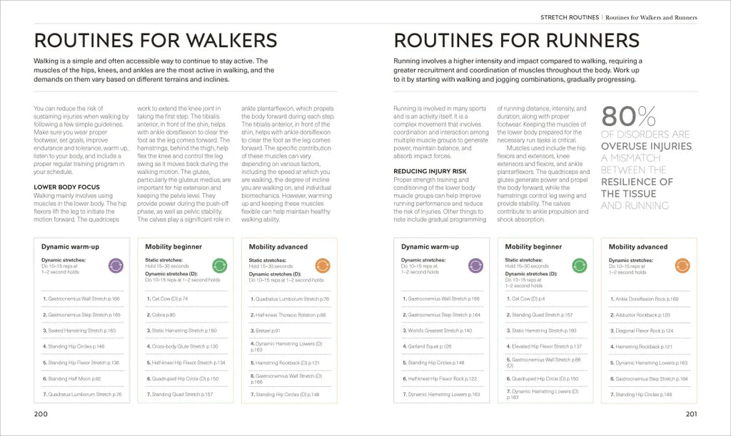-Finally, a series of suggested stretch routines are outlined, each with a progressive increase in challenge and tailored to different abilities and fitness objectives-alongside the tools to create your own bespoke workouts.