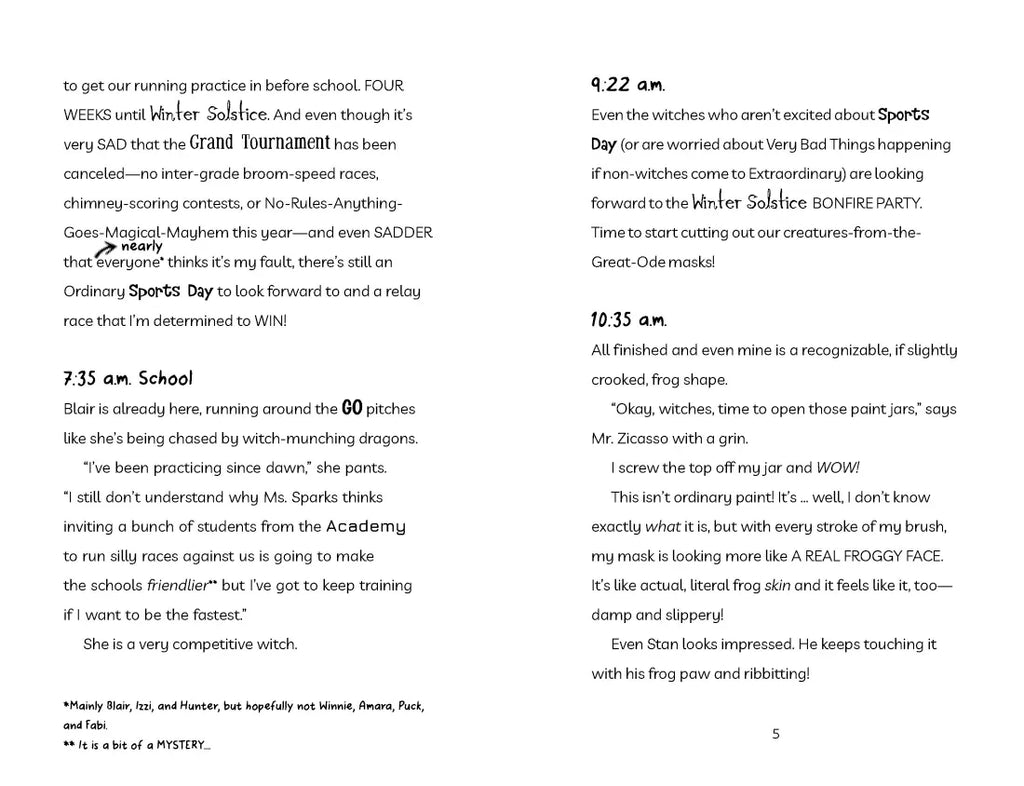 Everyone at the Extraordinary School is excited for the Winter Solstice Grand Tournament—especially Bea! But this year's tournament will be different: Extraordinary will compete against Spellshire Academy, and there's no magic allowed! Who will emerge victorious? And will Bea's friendship with her best non-witchy friend, Ash, survive the competition?