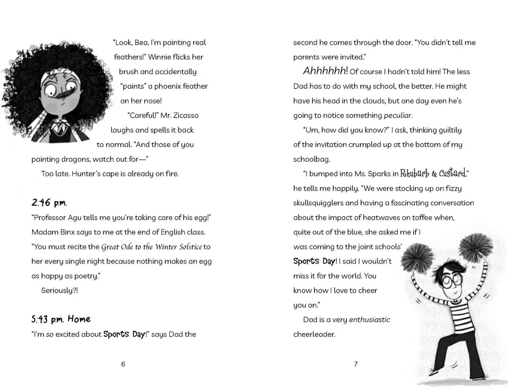 Everyone at the Extraordinary Academy is excited for the Winter Solstice Grand Tournament, especially Bea! She’s been practicing extra-hard and is ready to rise to the challenge. But then Ms. Sparks decides that this year’s competition will be different—there won’t be any magic allowed! It will be a regular sports day, and the students at Extraordinary will compete against non-magic school Spellshire Academy. With magic firmly forbidden, which school will emerge victorious? And will Bea’s friendship with her non-witch best friend, Ash, survive the competition? With black-and-white illustrations throughout.