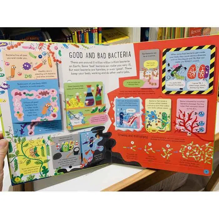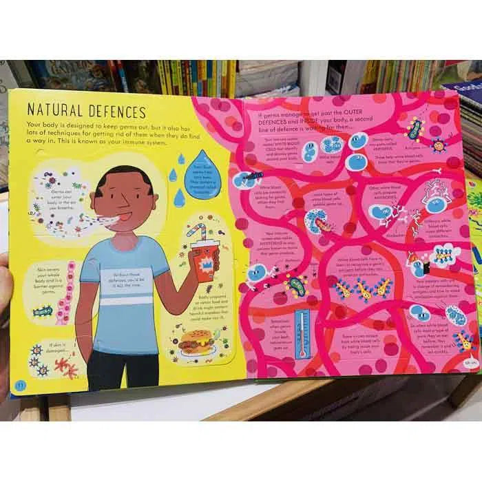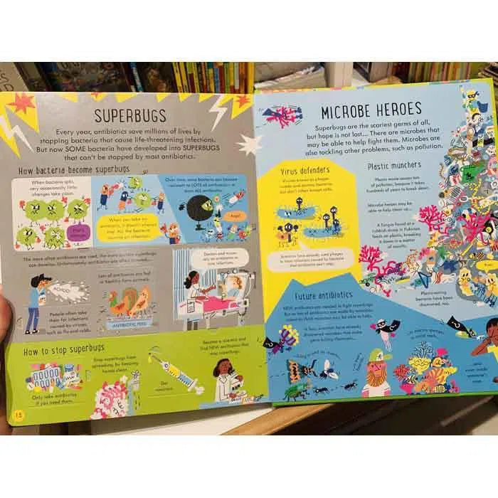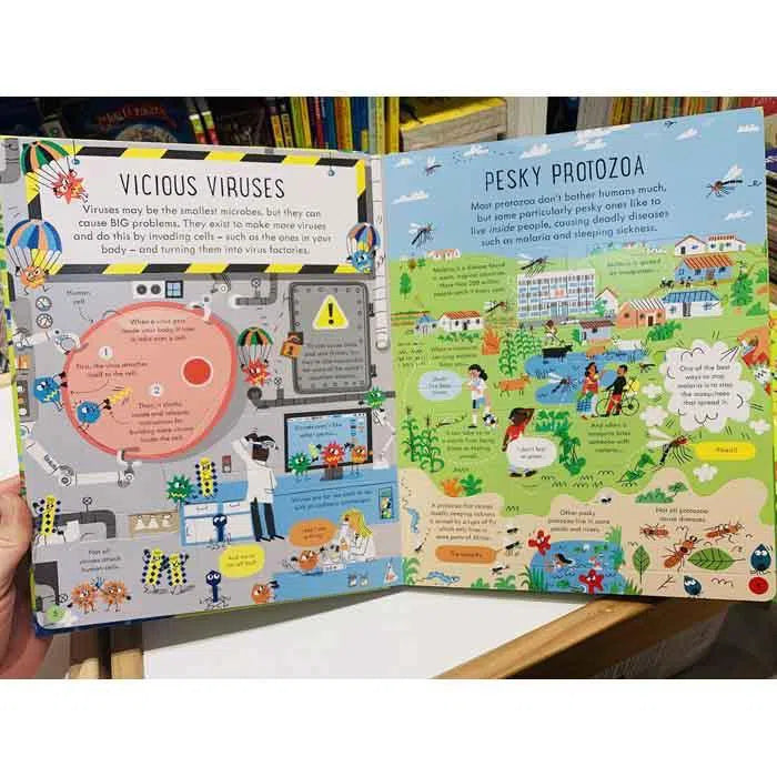 Explore the microscopic world of bacteria, viruses and other microbes with this fascinating lift-the-flap book. Discover how germs spread, how the immune system works, the amazing vaccines and antibiotics humans have created, and much more. With Usborne Quicklinks to specially selected websites for activities and videos and up to date information about coronovirus.