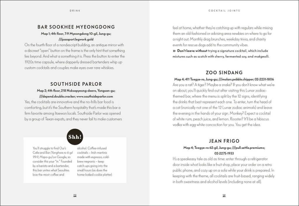 Compiled by four proud Seoulites, this stylish travel guide is packed with Seoul’s best experiences and hidden spots, handily categorized to suit your mood and needs.