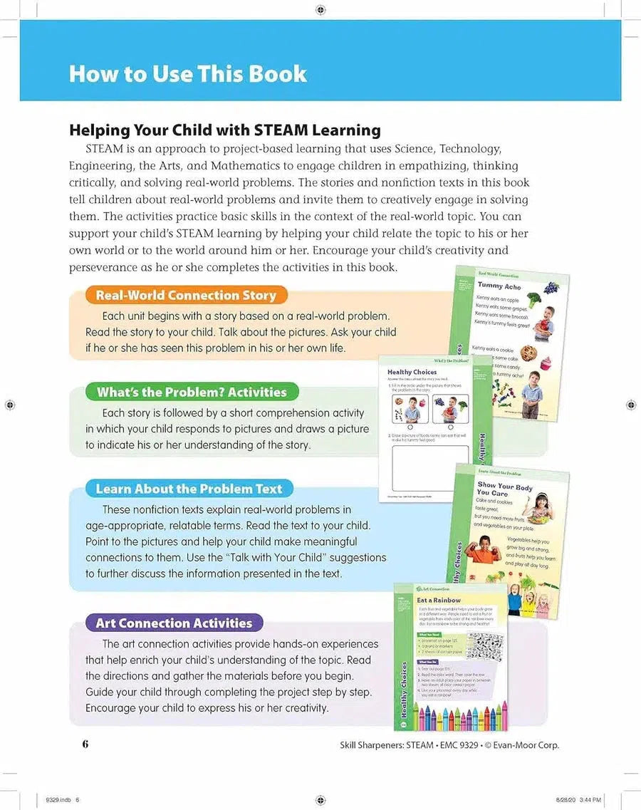 Skill Sharpeners: STEAM is where creativity meets academics! Each unit in this full-color workbook includes activities that prompt children to think creatively, and a fun hands-on STEAM project that encourages children to enjoy the journey of creating and sharing his or her solution to help create a better world.