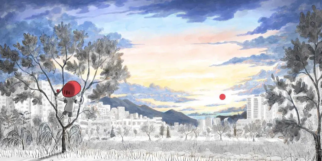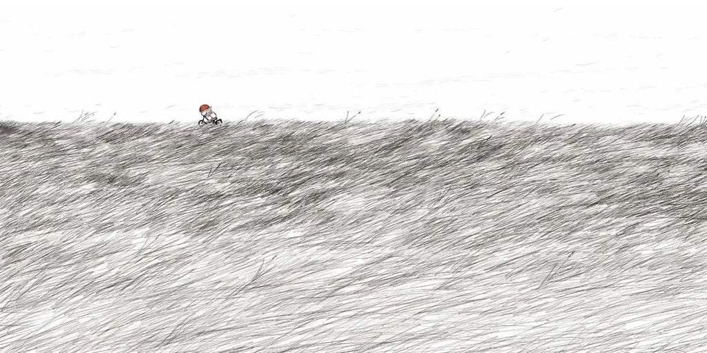 This very charming Korean picture book tells the story of boy who gets left behind by his big brother and his friends while on a bike ride. At first the boy feels sad that he can't keep up, but then he explores, makes friends with a snail and finally learns to enjoy going at his own pace.